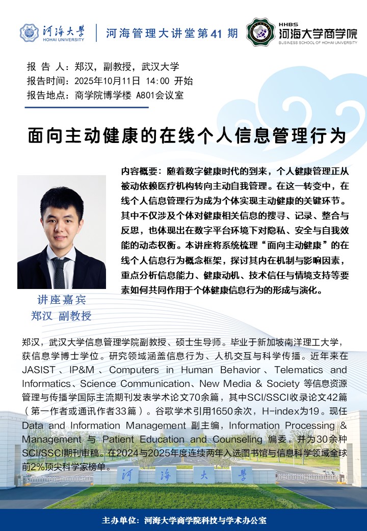 学士讲座通知:面向主动健康的在线个人信息管理行为