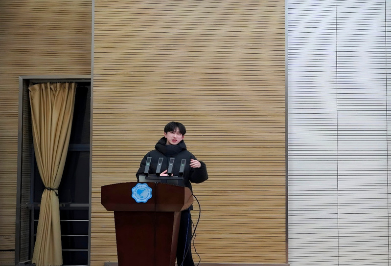 历年优秀社会实践团队负责人周子芮、浩铭、周梓豪进行经验交流。周梓豪同学首先结合自身参与“源泉工程”寒假社会实践的经历,从准备、实施、总结与成果展示四个阶段系统分享如何高效开展寒假社会实践活动,为同学们提供了清晰的实践路径。