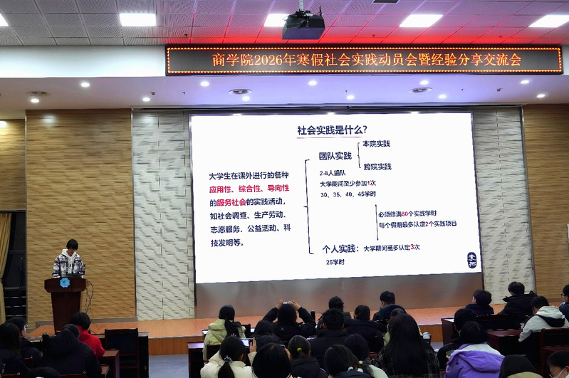 此次动员分享会为同学们搭建了学习交流的平台,不仅让大家汲取了优秀团队的实践经验,也进一步深化了对社会实践价值的理解。期待商院学子在2026年寒假社会实践中锤炼过硬本领、勇担青年责任、展示河海风采,以青春之行呼应时代之需,让个人成长与家国发展同频共振,在新时代的广阔舞台上书写更加绚丽的青春篇章!