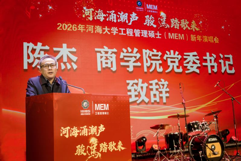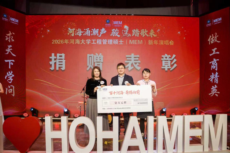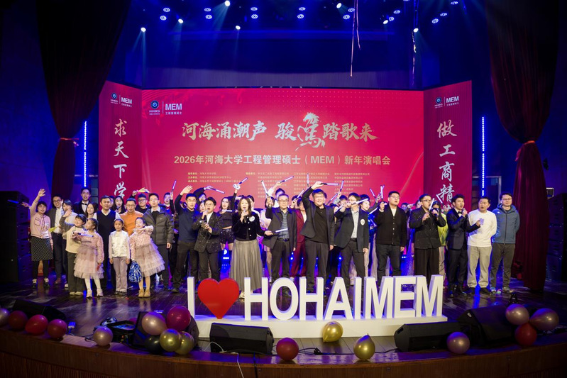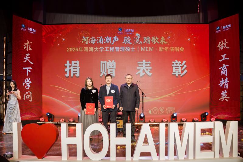 1月17日下午,河海大学江宁校区博学楼报告厅内潮声激荡、歌声飞扬,“河海涌潮声·骏马踏歌来”2026年工程管理硕士(MEM)新年演唱会隆重举行。演唱会通过丰富多样的艺术形式,生动展现了河海大学MEM学生全面发展、奋发有为的良好风貌,有效增进了师生交流,密切了校友联系,深化了校企合作,为构建河海大学MEM教育共同体搭建了高质量平台。活动期间还举行了的捐赠仪式,对捐赠同学颁发了捐赠证书。