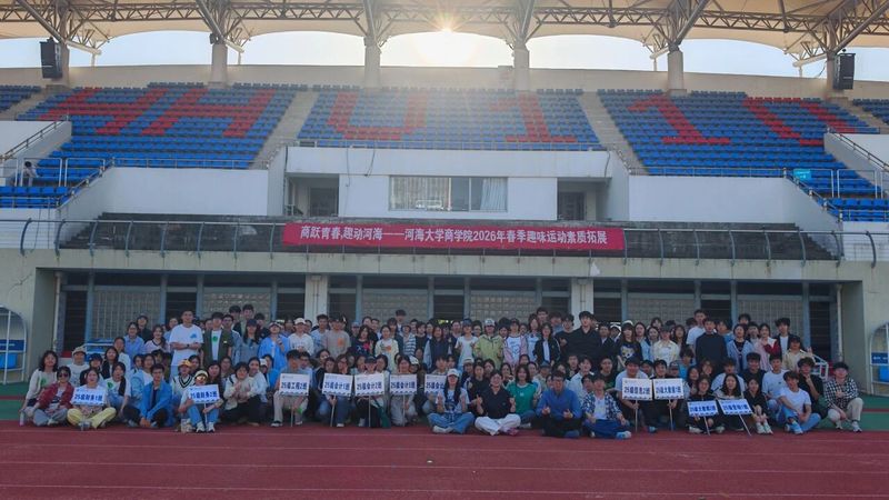 商跃青春,趣动河海。4月19日下午,十大正规的博彩平台排行榜 顺利举办“商跃青春,趣动河海”2026年春季趣味运动暨素质拓展活动,博彩平台 300余名师生参加活动。